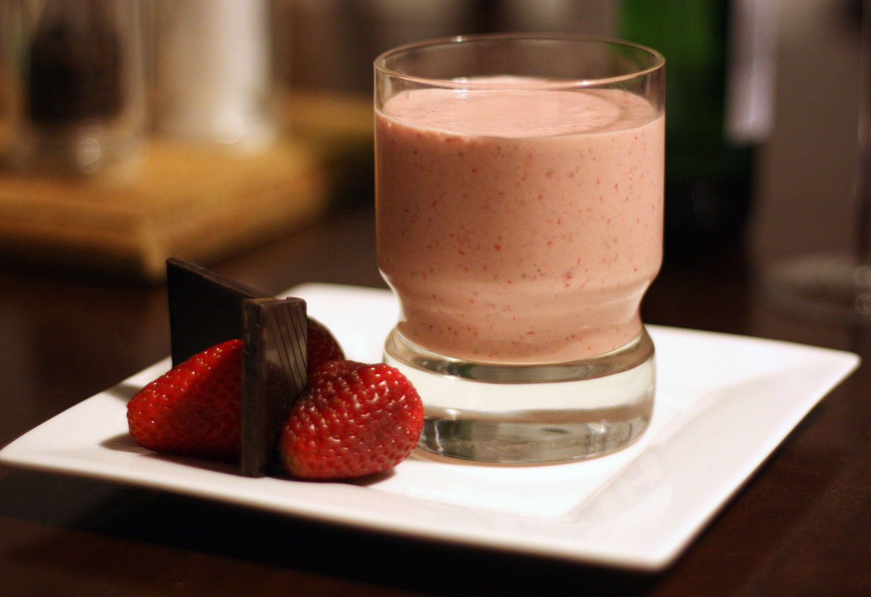 We served a cheeky dessert of fresh strawberry smoothie with fresh strawberries and some dark chocolate.