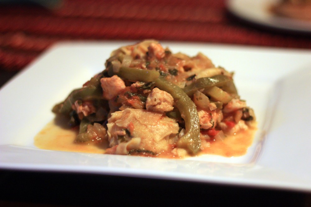 I discovered the the shredded corn wrap has the texture of a flat pasta. This was healthy, easy and delicious.