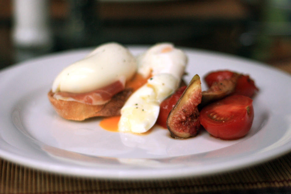 This was breakfast on the morning of our checkout. I had to use up the remainder of the figs which had been eaten with vanilla bean gelato so I sautéd those with baby truss tomatoes and served them on the side with some toasted sourdough topped with prosciutto and boiled eggs. Poached eggs, again, would have worked just as well.