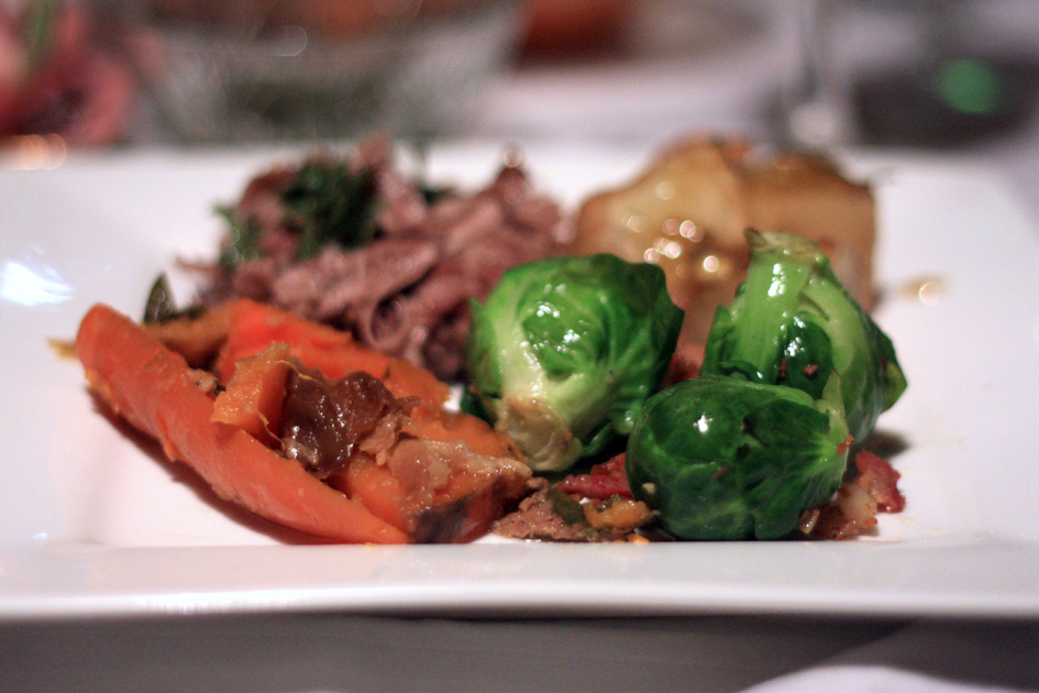 Main course was salt bush lamb roasted with garlic and rosemary for 6 hours accompanied by sweet potato, carrot, steamed brussel sprouts sautéd in bacon and potato roasted in duck fat. It was a wet and windy day so it was a lovely meal to kick off Autumn. Warm and comforting. If you’d like to read more about the wonderful ethical farming practices and awesome flavour of salt bush lamb click here.