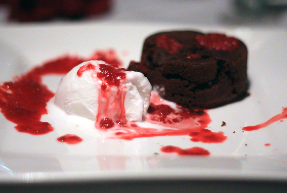 For dessert I made chocolate pudding which I have posted on here before and served it with home made raspberry sauce and coconut sorbet. A lovely vanilla gelato would have been my first choice but we had a lactose intolerant guest so the sorbet was the perfect solution.