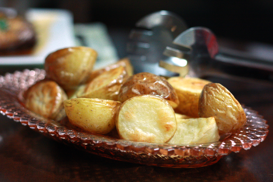 I’m always experimenting with the ultimate in roast potato as well. I had some baby potatoes in the cupboard which I halved and par boiled. Then I drained and put them in front of the heater so they dried out. Then i popped them in the oven on about 210ºC with about 1-2 tablespoons of duck fat for about 20-30 minutes (or until sufficiently crisp).