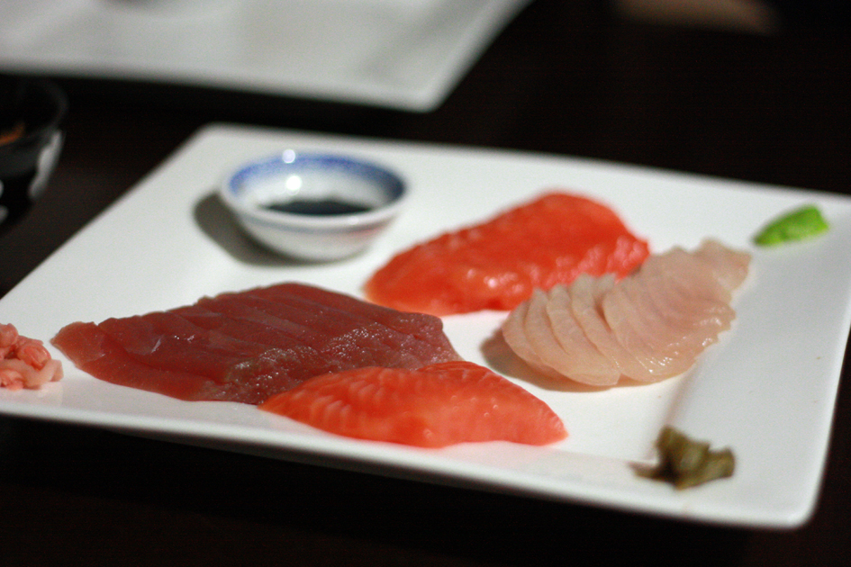 I then made dipping sauce out of a dash of rice vinegar, mirin, sake and light soy sauce to serve with tuna, salmon and hiramasa sashimi. Pop some pickled ginger and wasabi on the side.
