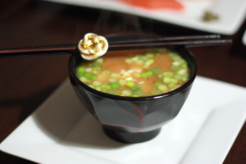 Heat dashi broth until just under the boil. Mix a little miso paste in a ladel with some broth and stir in. Keep adding until happy with the flavour. Add in shallots and tofu and serve. You don’t want to bring this to the boil as it destroys the delicate flavours in the miso paste. You could also use any miso paste for this dish.