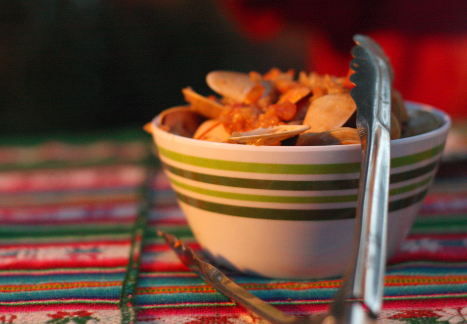 We were lucky enough to head off over Easter for an extended break camping in the beautiful Hat Head National Park at a camp site called Smokey Cape which was set in a little rainforest at the foot of a headland with 4WD access to a long and spectacular beach. We took some ingredients to make various delicious treats and attempted a little self sufficiency with a fishing rod. Thank goodness we weren’t relying on this as the fish weren’t biting so the local co-op helped out by supplying us with our seafood meal. Lucky for us there were a zillion pipis on the beach so we collected a modest share which I cooked up to have with our ‘bought’ fish. Not too bad an effort and if you’ve ever collected pipis you’d know how much fun it is.