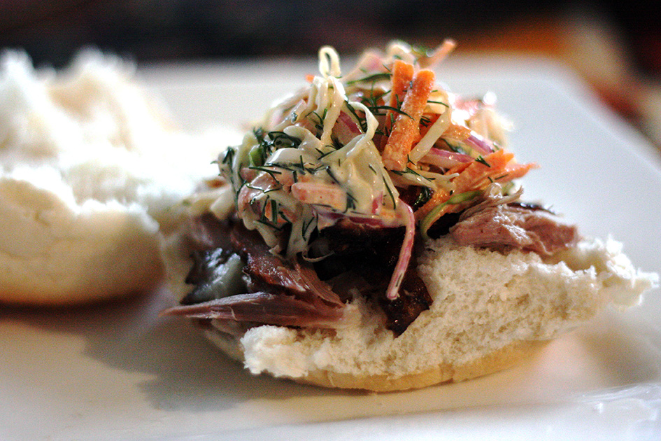 Who doesn’t love them? We recently smoked an extra pork shoulder at our BBQ so we could have a stockpile of pulled pork for various uses on hand. What better way to put it to use but in a fresh fluffy white roll with home made coleslaw. The coleslaw got the thumbs up. My taller half said it has now ruined him for store bought slaw for good.