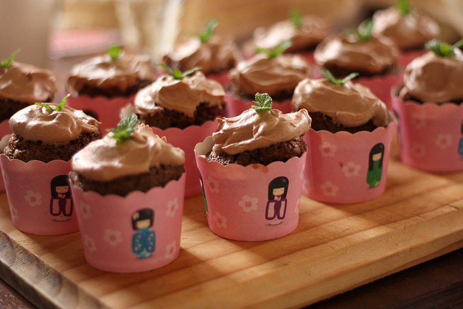 Having bought some of the cutest cup cake wrappers recently I couldn’t resist giving this recipe I came across a go. I wasn’t in the mood for mint and I couldn’t locate the White Wings mousse mixture required, despite visiting three supermarkets, so I made up a mixture of icing sugar, cocoa and whipped cream and they went down a treat in the office.